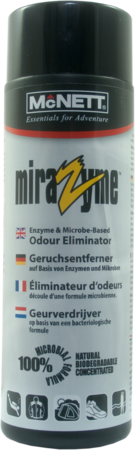 MiraZymeâ„¢ Geruchsentferner ist eine leistungsstarke Mischung natürlicher Enzyme und Mikroorganismen zur Entfernung von Gerüchen, die durch Moder, Schimmel oder Bakterien verursacht werden. McNett hat eine einzigartige Mischung von 10 natürlich vorkommenden und stark angepassten Enzymen, Mikroorganismen und anderen organischen Bestandteilen entwickelt, die die Quelle von Gerüchen erkennen und entfernen.